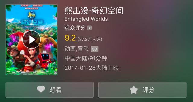 《一条狗》以萌狗及温馨换来铲屎官的共鸣和年轻群体的感动;《熊出没》以趣味及真善美的内核征服万千熊孩子,继而征服了属于它的主要评分人群(孩子爹妈)。
